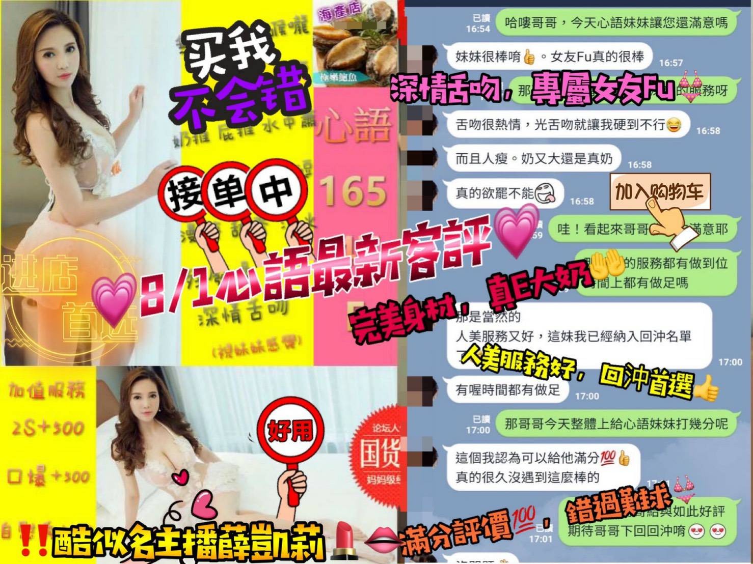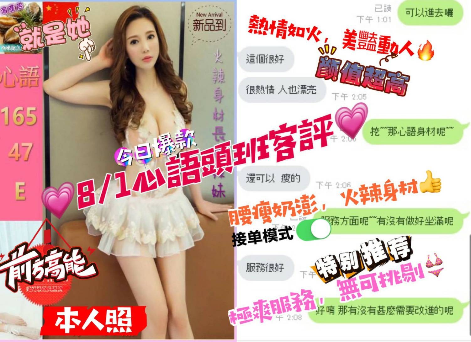 可配合 :按摩,69,無套吹,口爆,顏射,攝影,快餐,2S